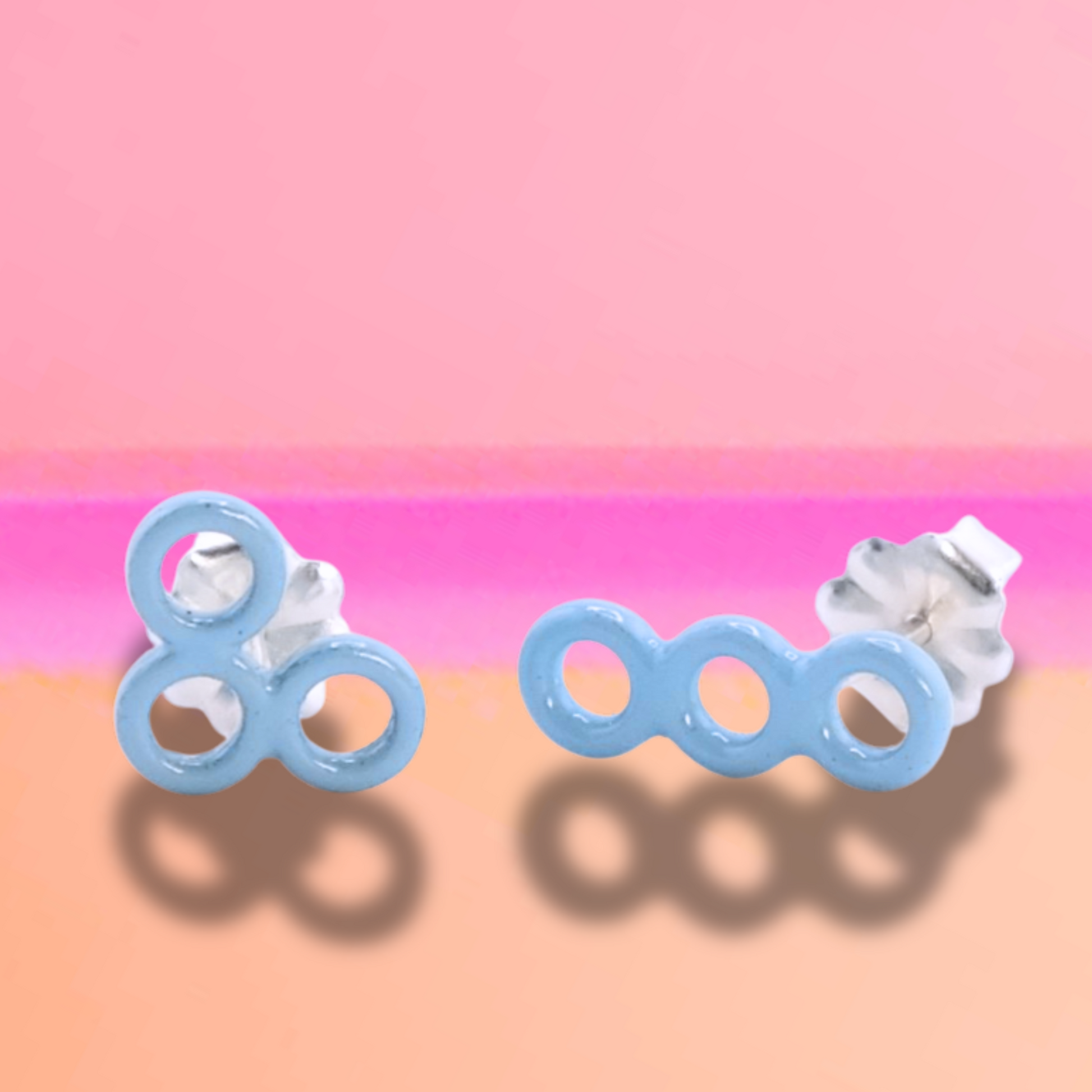 Silly Circles are the same but different. Powder-coated metal earrings with .925 sterling silver posts and backings (nickel free). Color description -This blue has a very slight touch of gray to give it that retro 1950's powder blue tone.